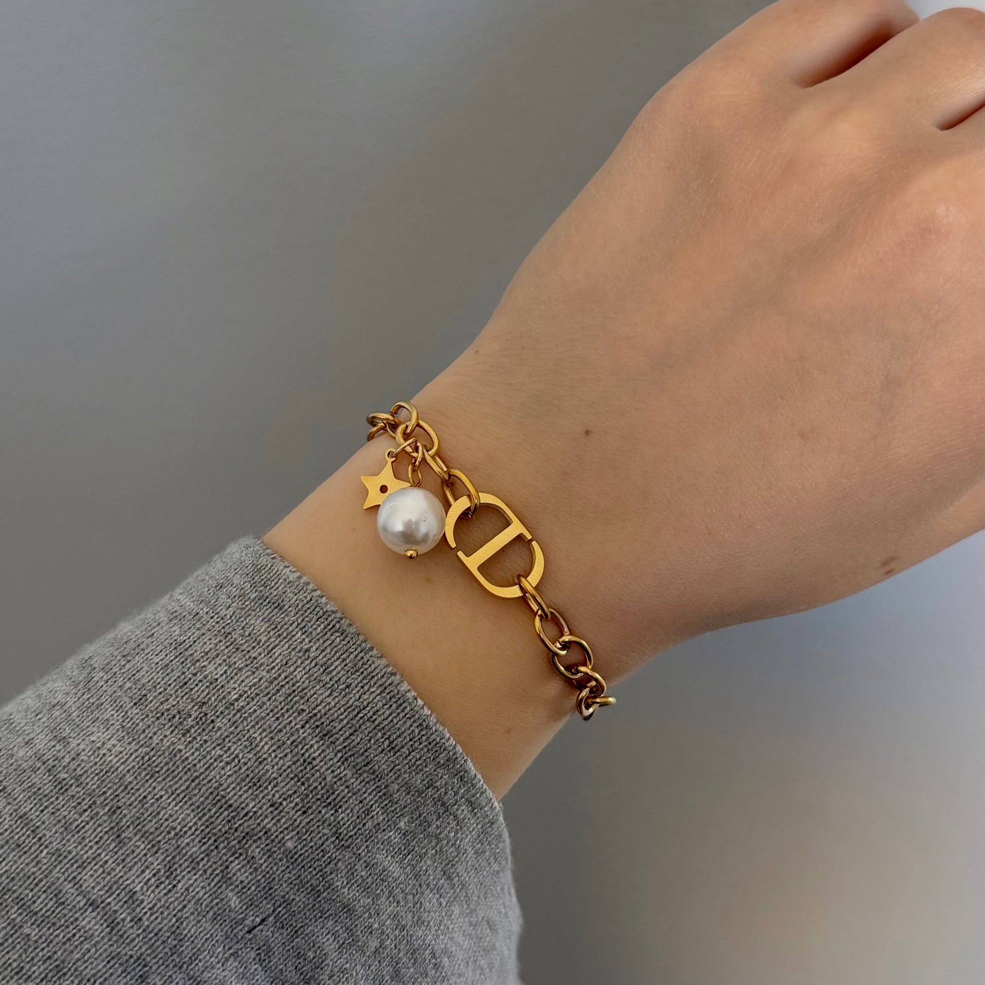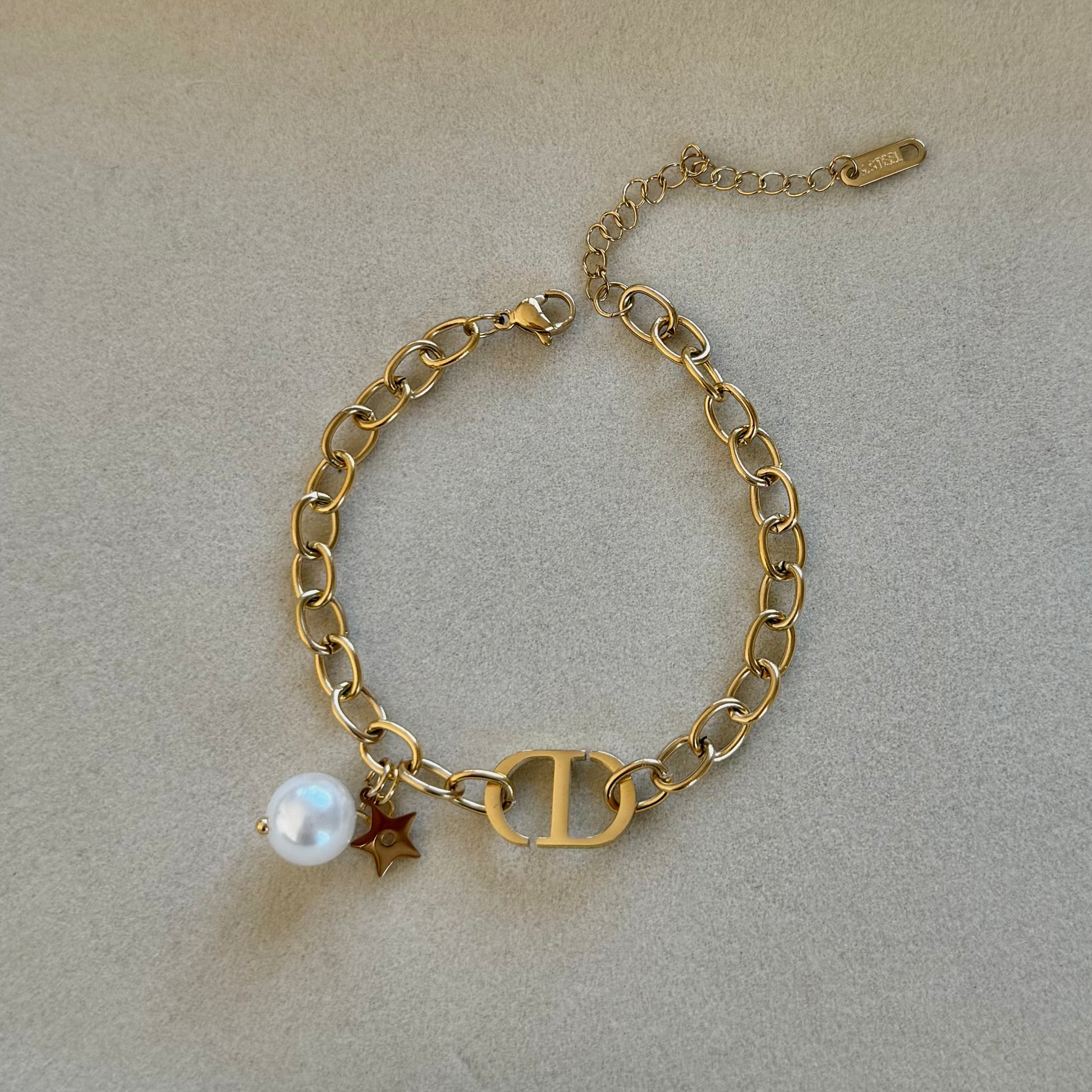 Bransoletka wykonana ze stali chirurgicznej. Długość bransoletki 17 cm + 5 cm łańcuszek wydłużający.