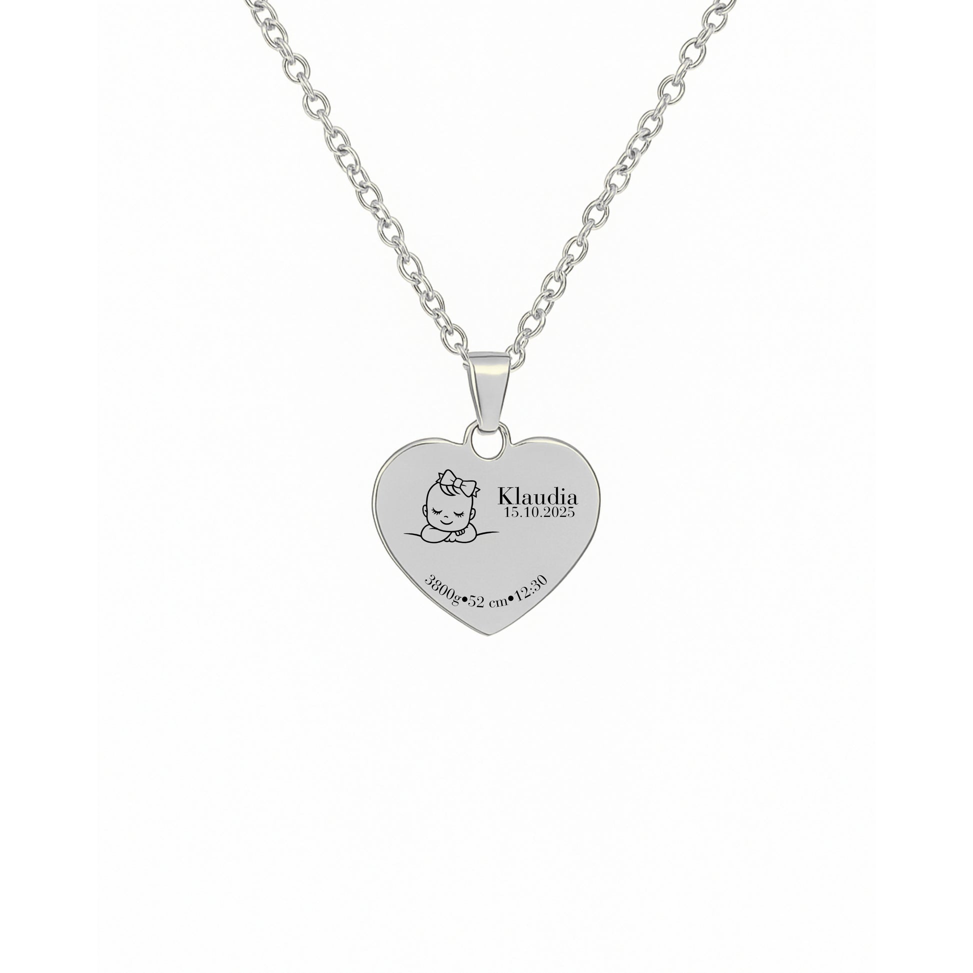 Naszyjnik z grawerem „Baby Girl” to biżuteria, która zatrzymuje emocje w szlachetnej formie. Tworzony na zamówienie, z indywidualnym grawerem, staje się osobistym talizmanem miłości i najważniejszych wspomnień — takim, który nosi się blisko serca przez lata. Idealny dla córki, chrześnicy, siostry, mamy lub przyjaciółki, gdy chcesz podarować coś pięknego, symbolicznego i ponadczasowego.