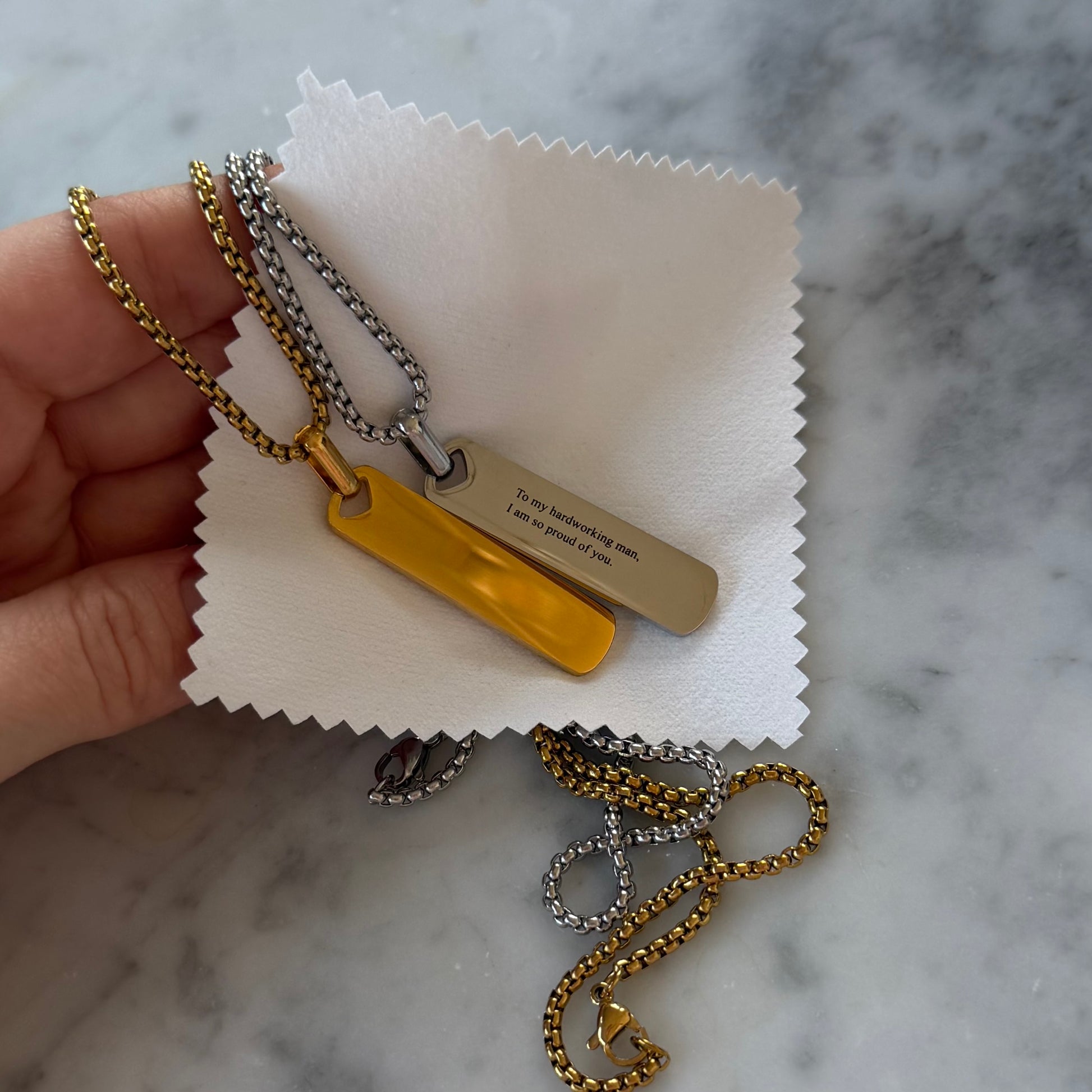 Grawer robimy z najwyższą precyzją, a naszyjnik przychodzi w eleganckim opakowaniu.