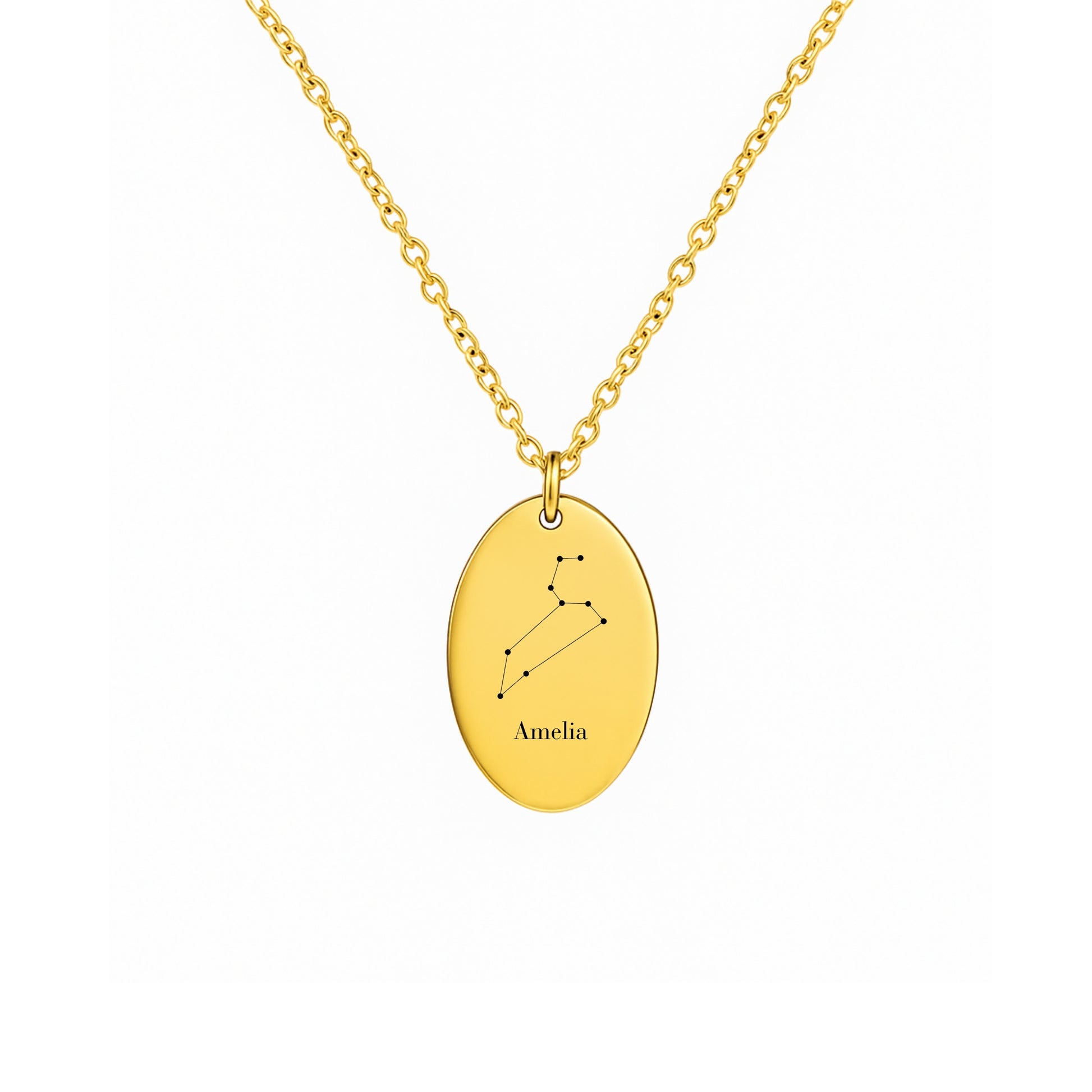Naszyjnik z grawerem gwiazdozbioru i imienia to biżuteria o wyjątkowym, osobistym znaczeniu. Delikatny zodiakalny gwiazdozbiór połączony z imieniem tworzy talizman, który symbolizuje historię, charakter i energię osoby, którą kochasz — albo Ciebie samej. To subtelna forma, która dyskretnie podkreśla to, co ważne i niepowtarzalne.