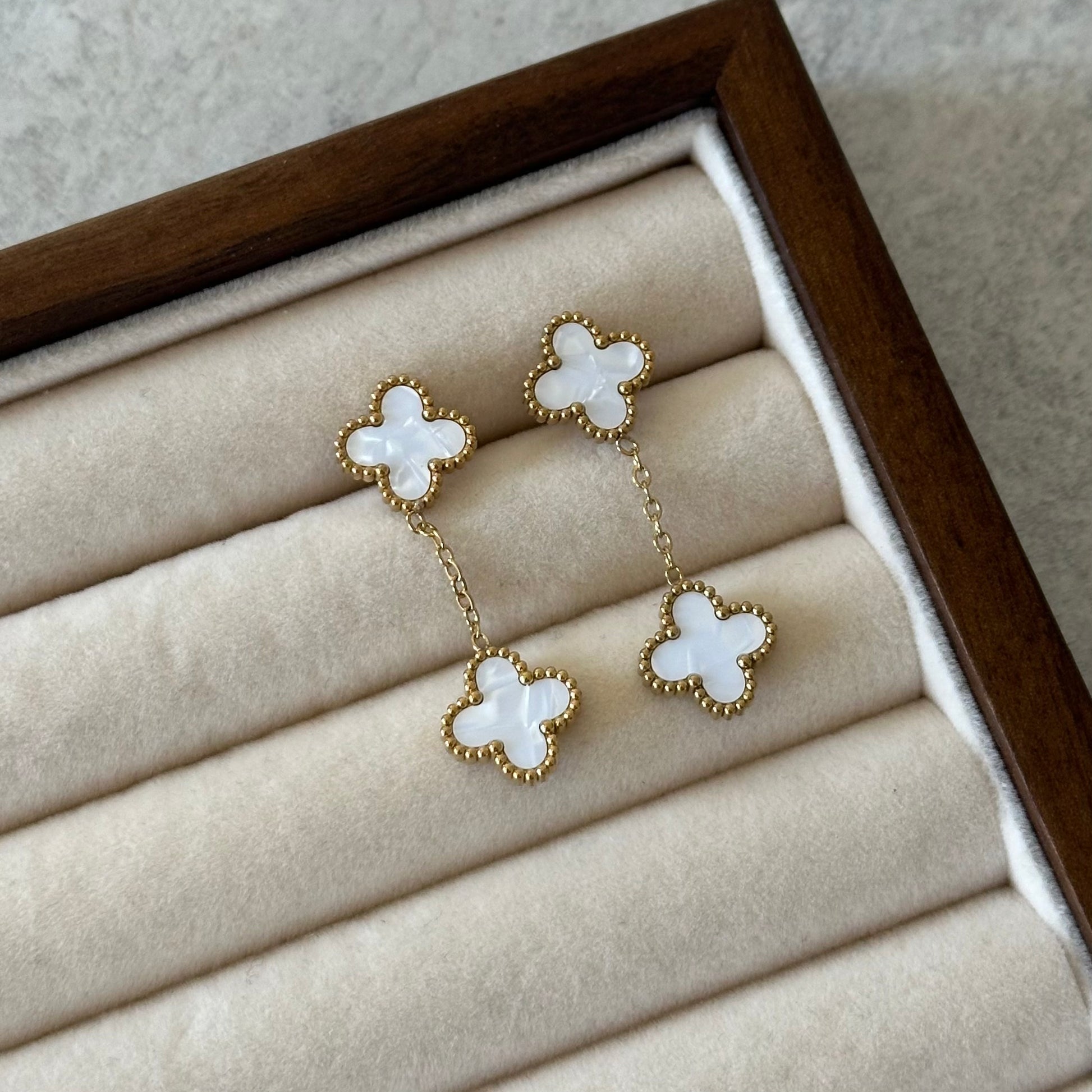 Kolczyki wykonane ze stali chirurgicznej, są wodoodporne, nie czernieją i nie uczulają. Długość kolczyków 40 mm, średnica koniczynki 13 mm, koniczynki obustronne.