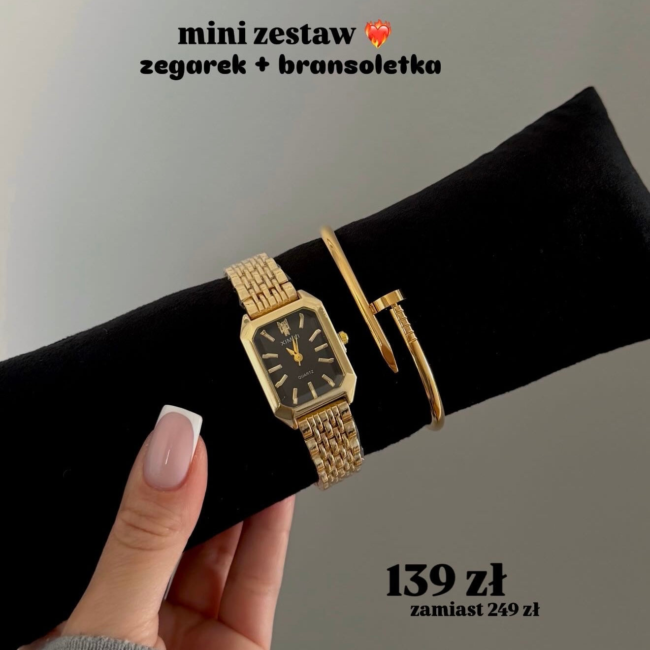 Zestaw składa się z zegarka oraz bransoletki Cartell. Zegarek posiada regulowany pasek.