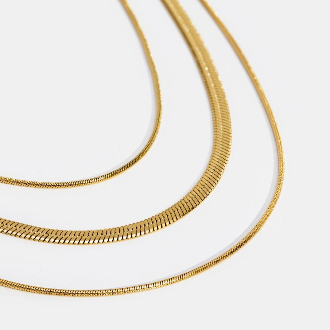 Naszyjnik składa się z 3 łańcuszków o grubości 1 mm, 3 mm, 1 mm, długość 37 cm, 41 cm, 45 cm.