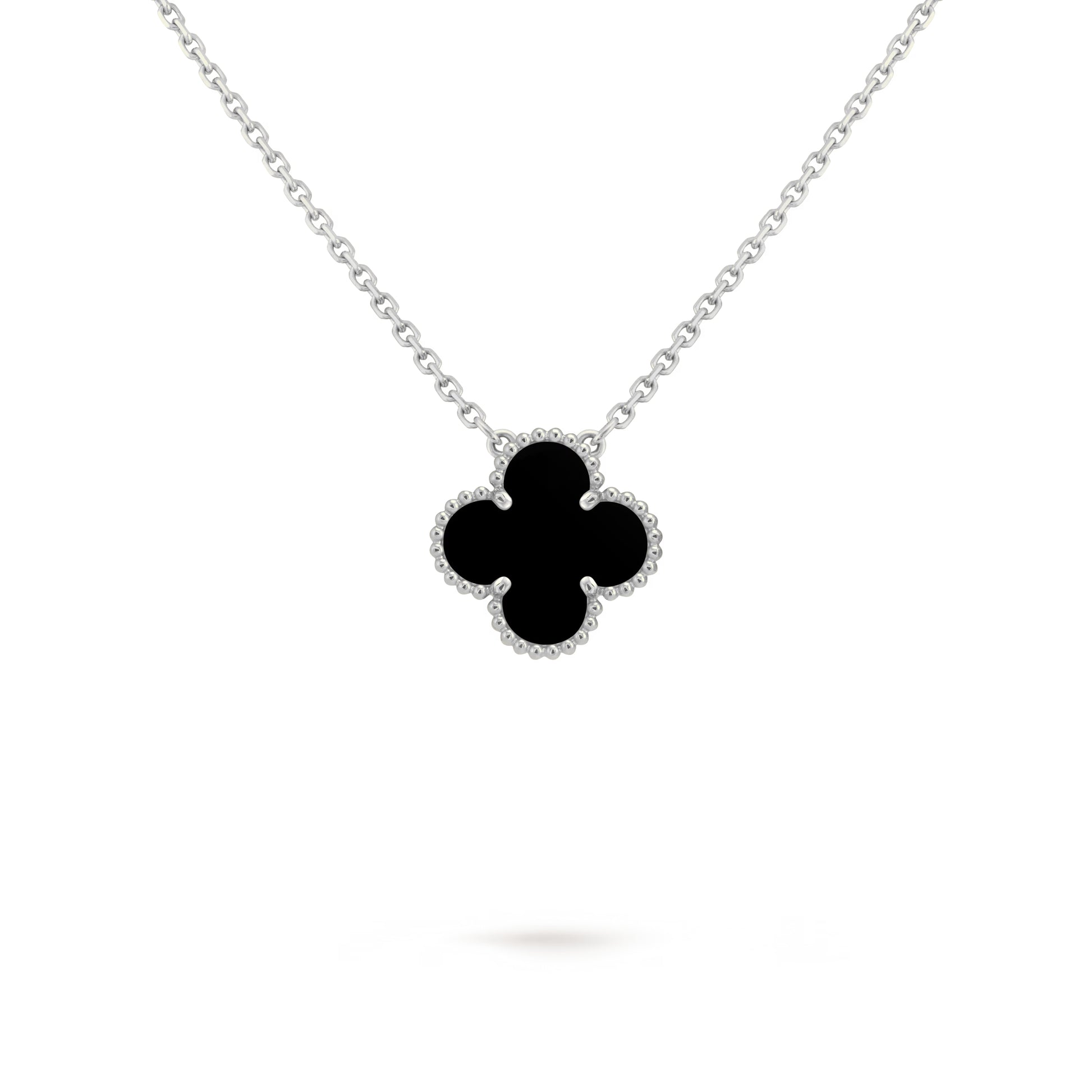 Długość naszyjnika 38 cm + 5 cm łańcuszek wydłużający. Średnica koniczynki 15 mm.