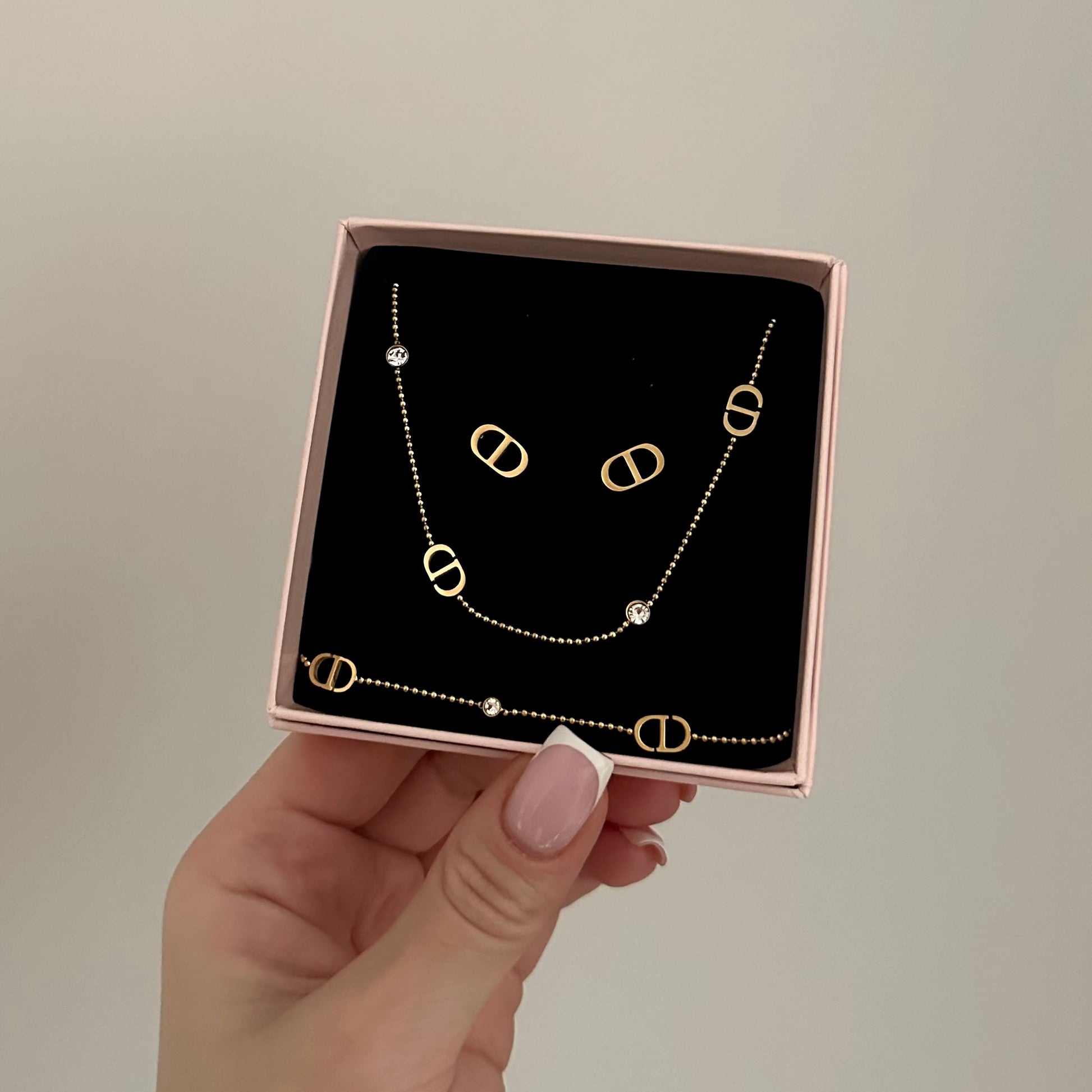 Zestaw składa się z naszyjnika, kolczyków i bransoletki. Pakowany w pudełeczko na prezent.