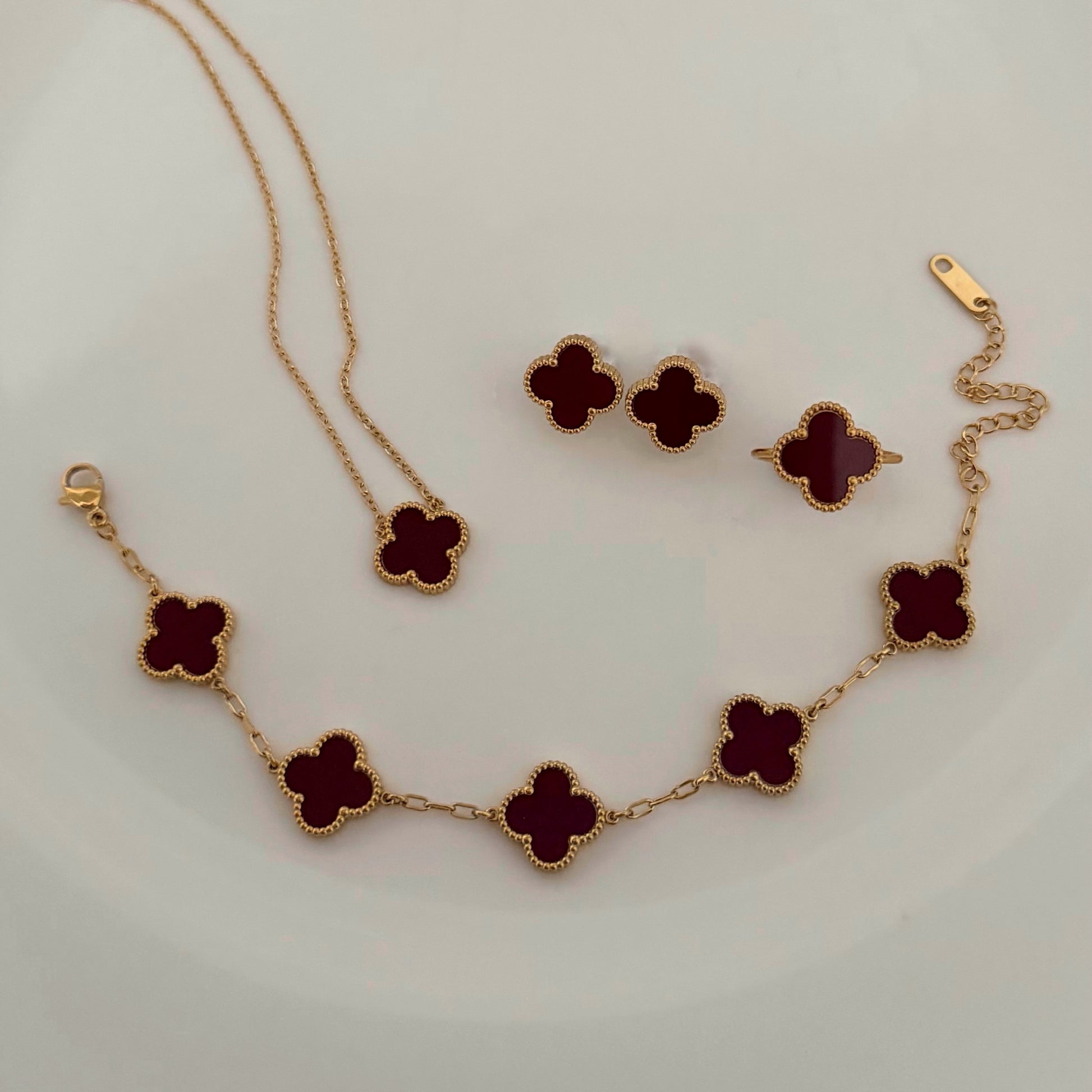 Zestaw zawiera naszyjnik, kolczyki i bransoletkę +pierścionek gratis . Zestaw pakowany w pudełeczko na prezent.